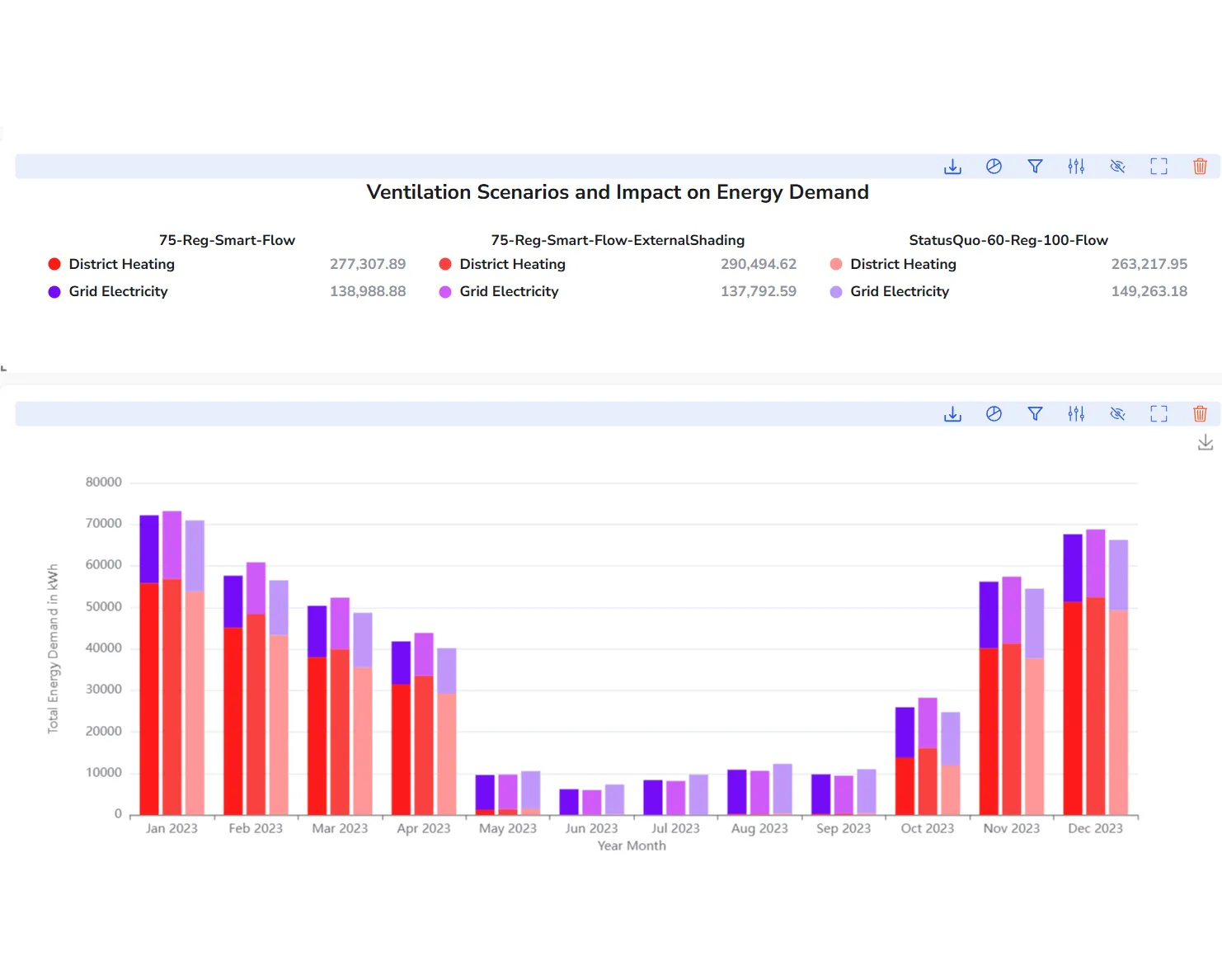 Mit dem Digitalen Zwilling simulieren Sie unterschiedliche Ausbaupläne, Energiesysteme oder Steuerungskonzepte mit stündlicher Auflösung. Die Ergebnisse helfen, Risiken zu minimieren und fundiert zu planen. Nutzen Sie den Zwilling sowohl in der Grundplanung als auch in der Ausbauplanung, um gemeinsam mit allen Stakeholdern die beste Raumplanung und die kosteneffektivste technische Ausstattung zu bestimmen.